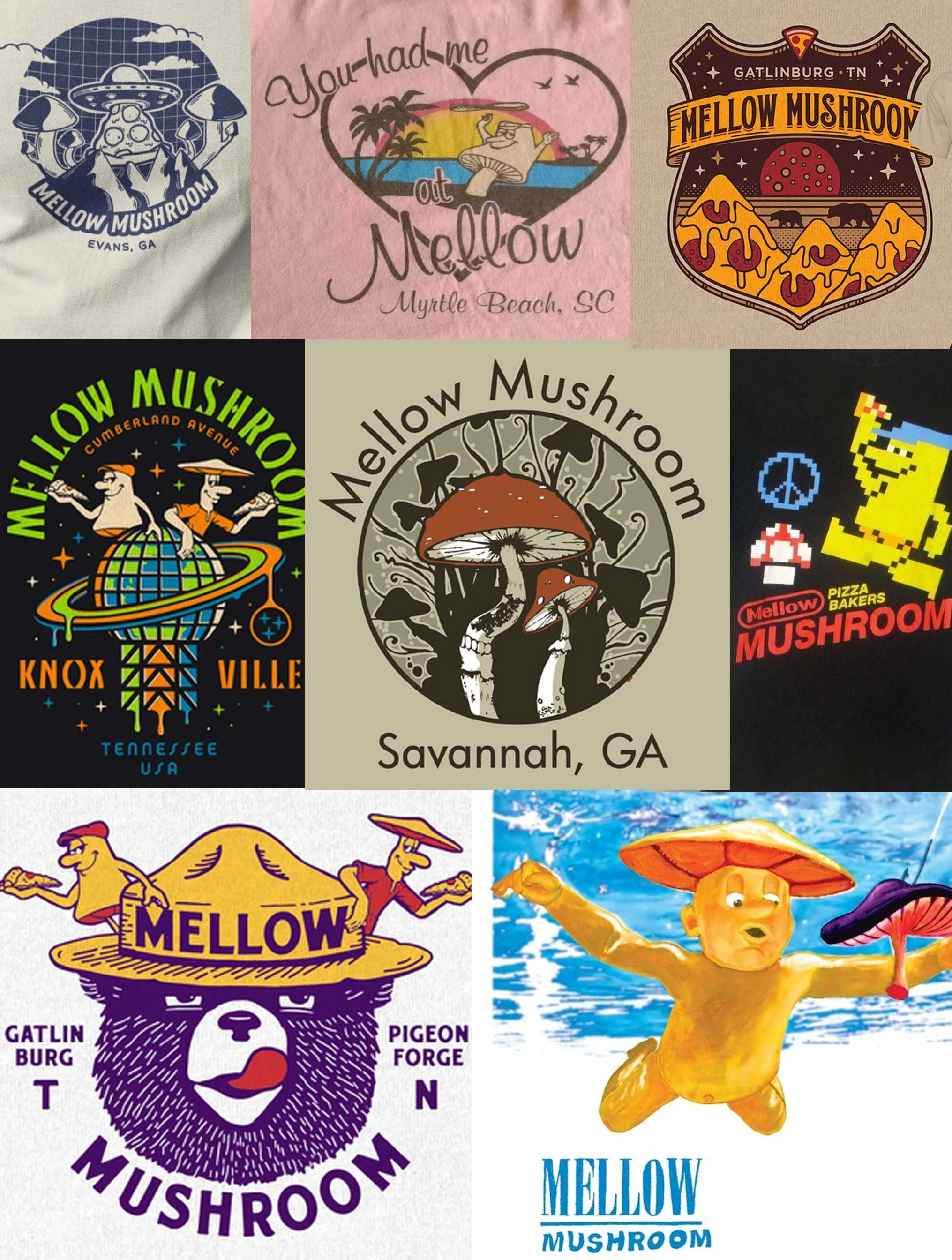 Mellow Mushroom has pychadelic-focused branding. Before too recently, that was pretty much the only guideline. Is it suggestively psychadelic and is it cool?