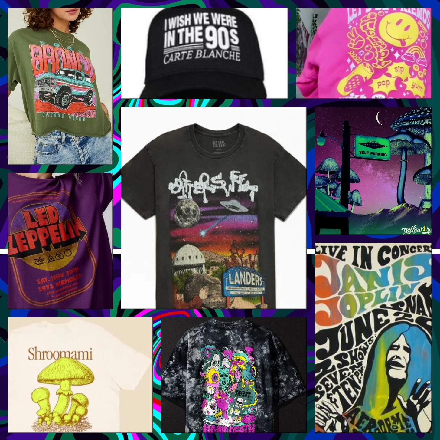 The Aesthetic: Mushrooms, Pizzas, Rock Album Covers, trippy-but-not-dangerous, retail-inspired, high color usage, internal story elements, streetwear-inspired. Easy, right?